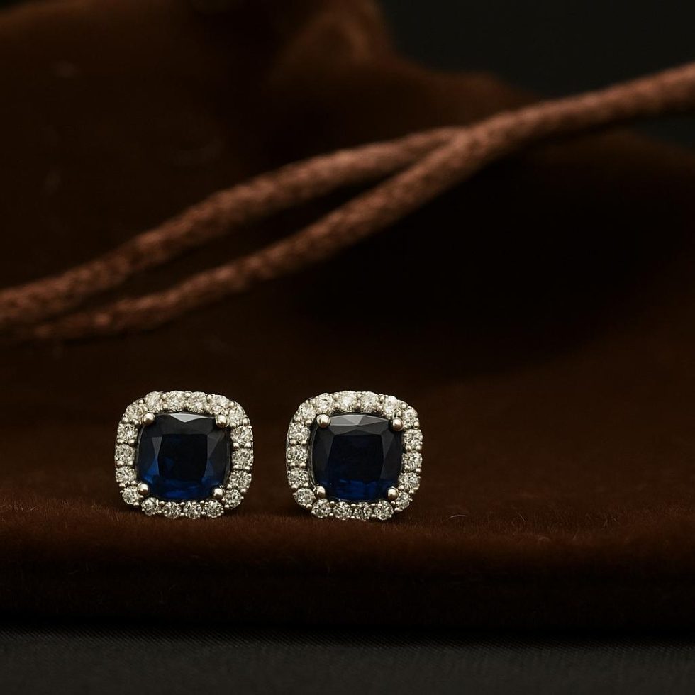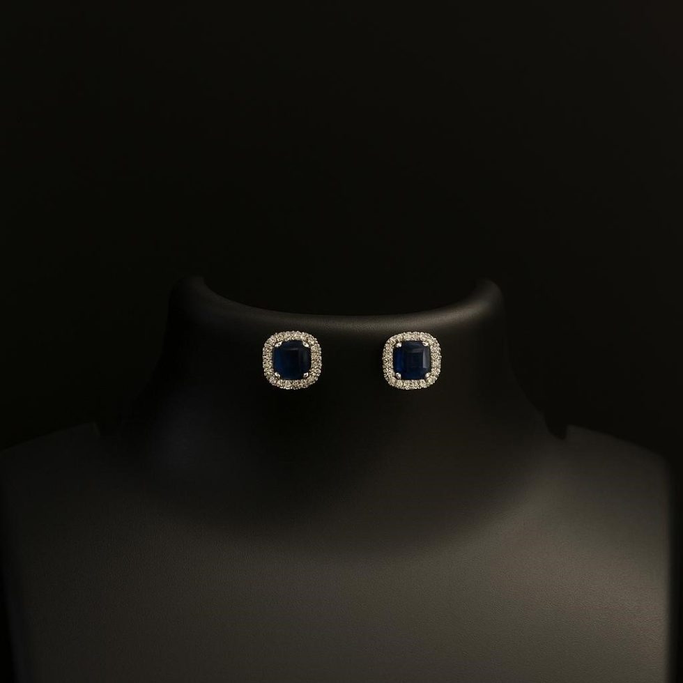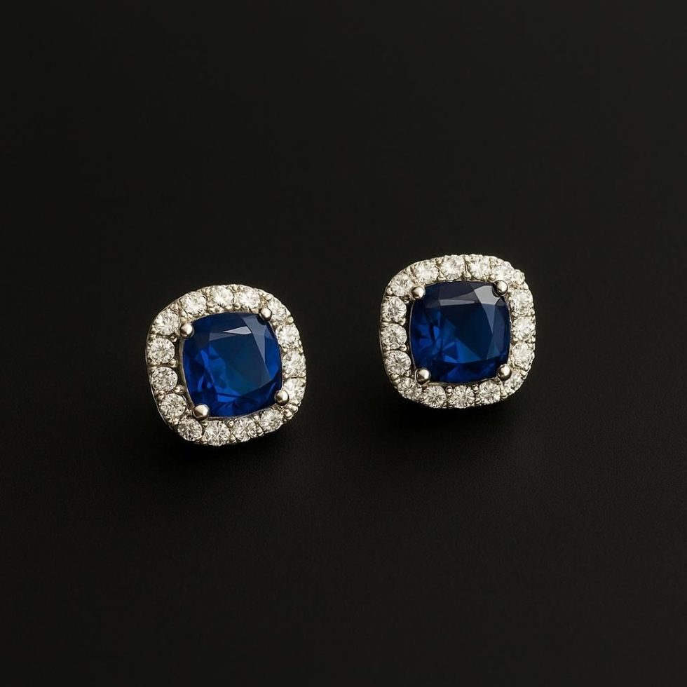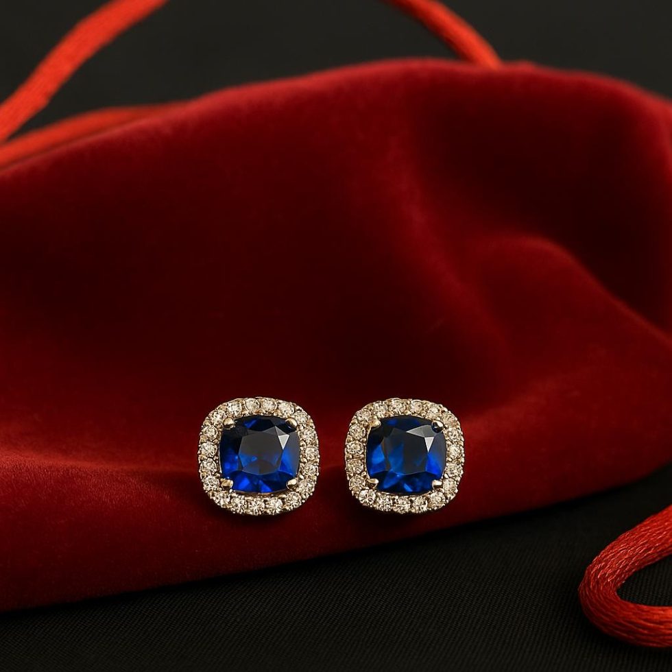 Vivid Centerpiece: Each earring showcases a stunning, cushion-cut blue stone, reminiscent of a royal sapphire, offering deep color and captivating brilliance.