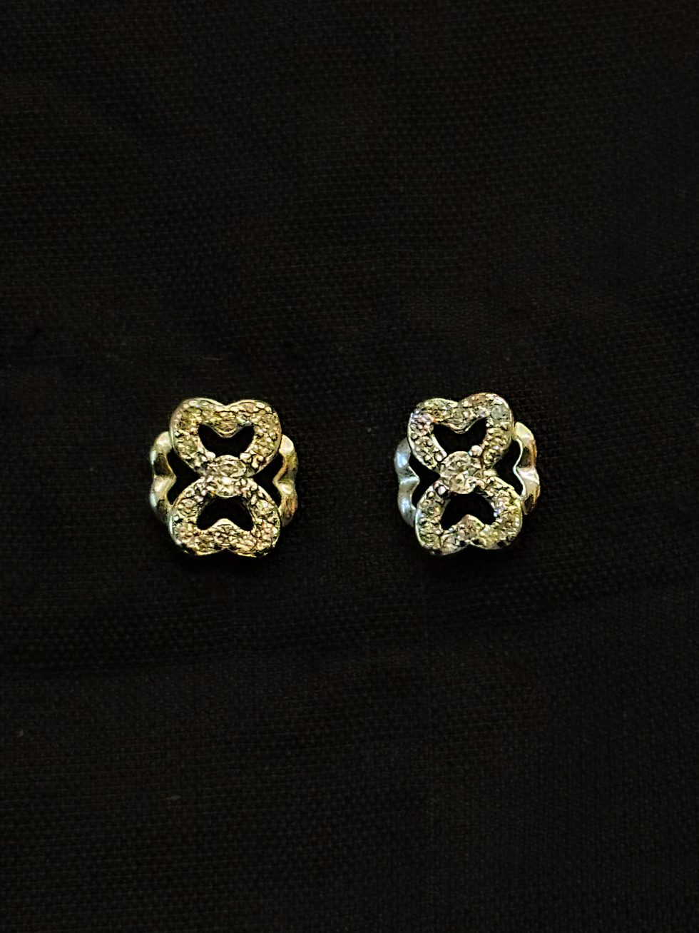 Find your luck in love with these unique 925 sterling silver earrings, featuring four intertwined hearts that form a sparkling four-leaf clover.