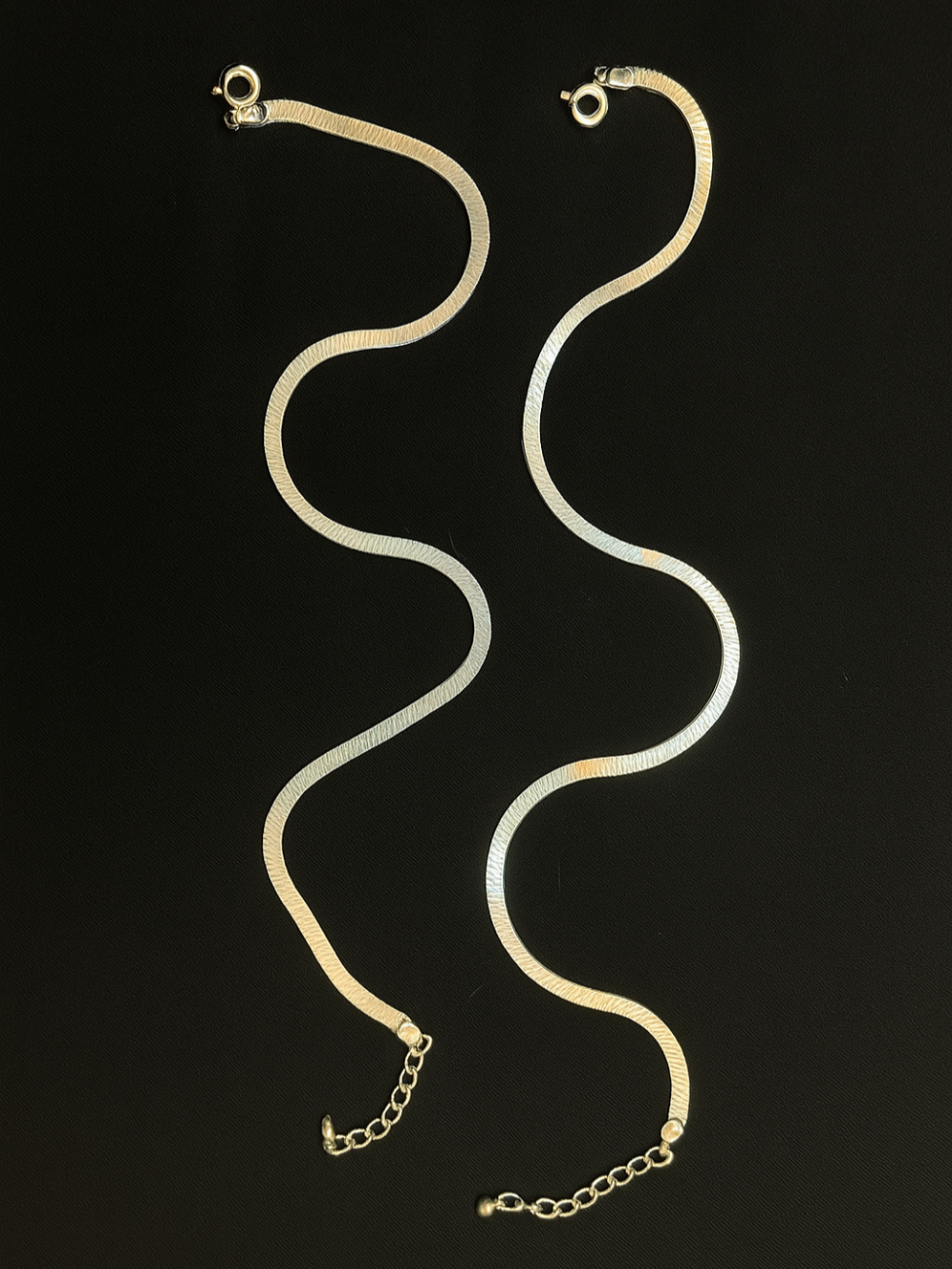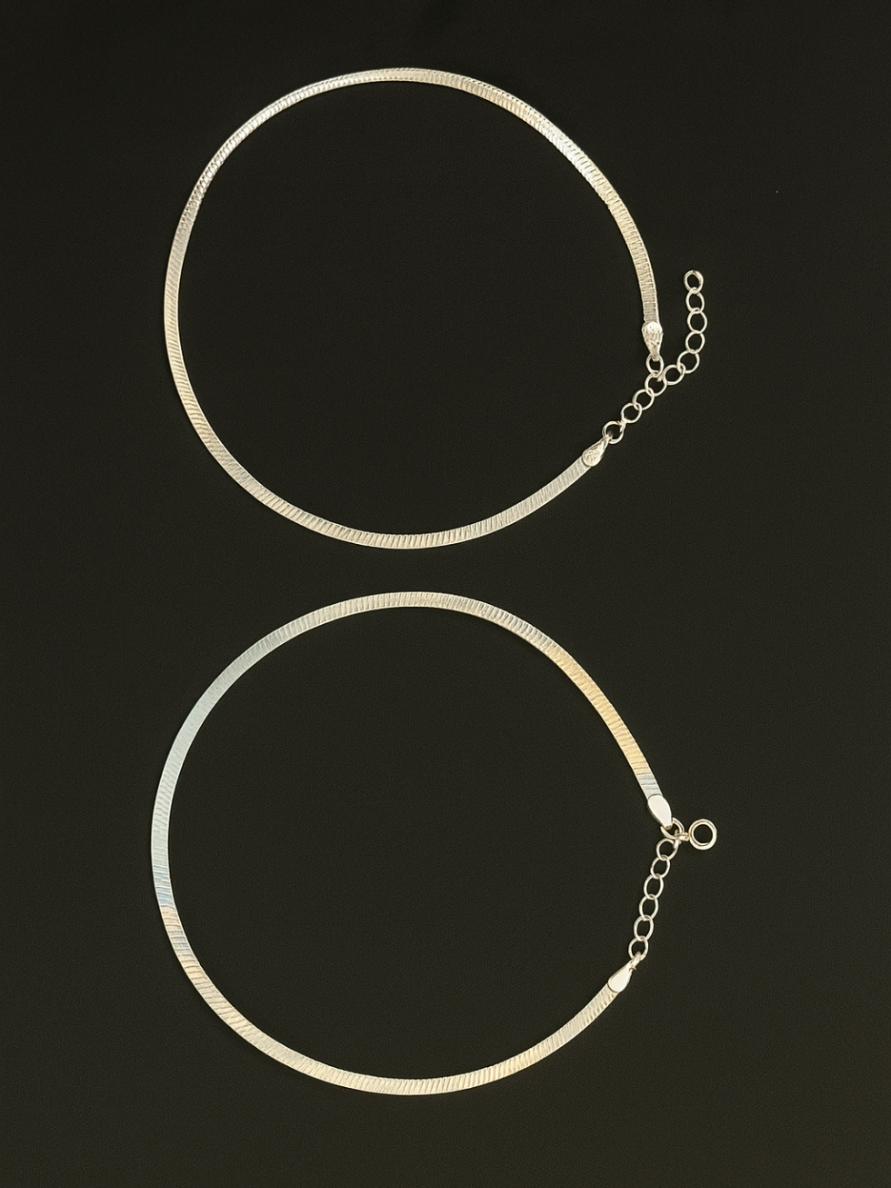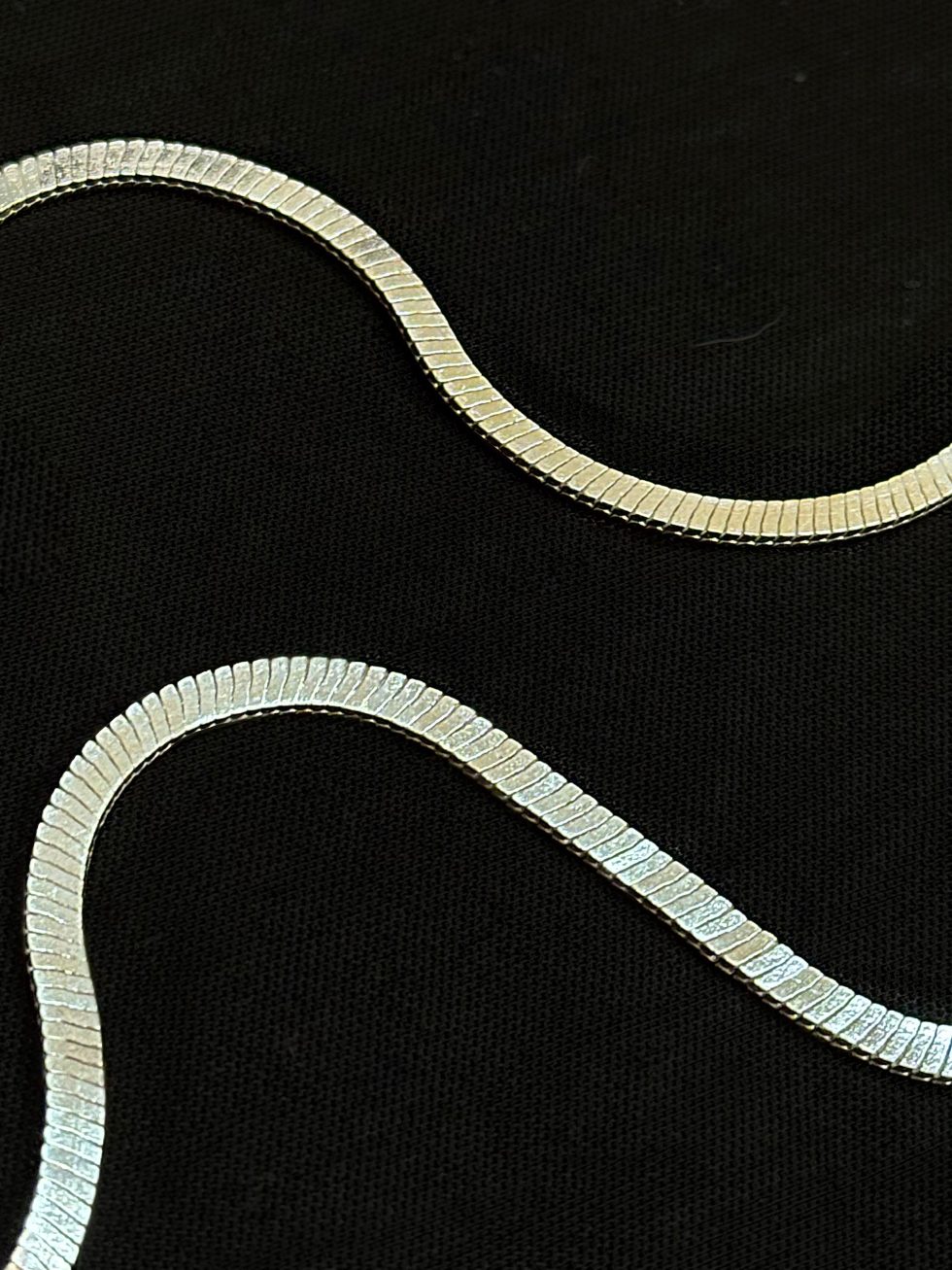 Sleek Snake Chain: A flat, flexible design for a liquid-silver look.